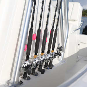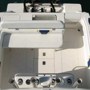 For live bait fishing, the 290 features a standard 50 gallon bait well integrated into the transom, along with two optional wells, including a 60 gallon in-deck well.