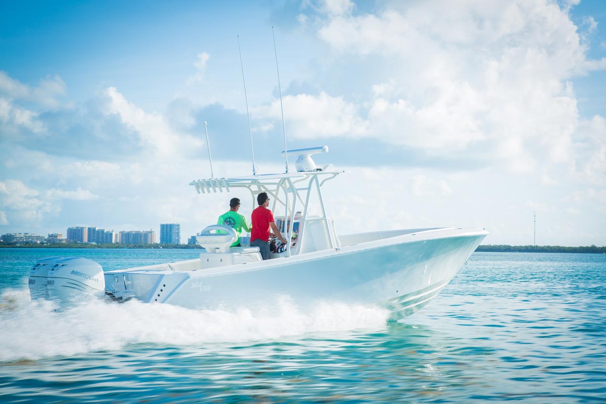 Meet the all new 290 from SeaVee Boats. The composite cored hull reduces weight significantly and makes for a stiffer, quieter boat with improved overall performance. Economical to run and easy to trailer, the 290 offers the kind of affordability that makes offshore adventures happen!