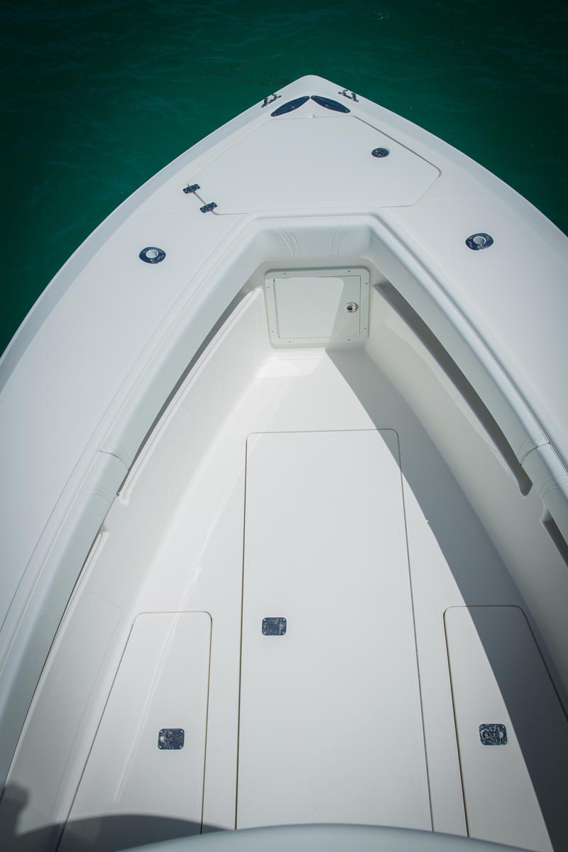Large, clean, flush decks mean there’s no stepping up and down while fighting a fish, and plenty of fishing space for the whole team, You and your crew move about securely on an uncluttered deck with a grippy, nonskid finish underfoot.