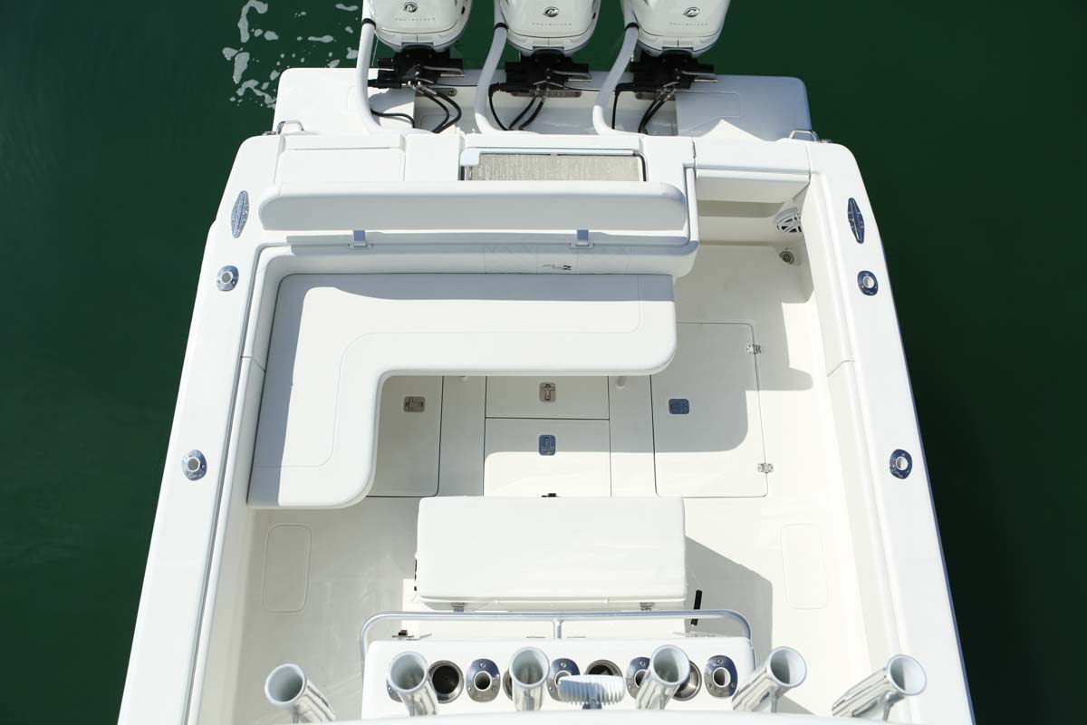Designed to dominate fishing tournaments and lead the way on long runs offshore, the SeaVee 340z can be powered with twin or triple outboards up to 1,350 hp. Popular fishing options include an upper station with full controls, up to 3 insulated fish boxes with a combined 293 gallons of capacity, plus an optional coffin box and up to 4 live wells. Upgrading with Luxury Edition options (LE) adds molded-in forward seating and removable rear benches for more comfort and versatility.
