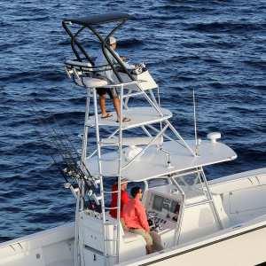 Towers allow the captain to spot fish at a distance. SeaVee offers a wide variety of choices.