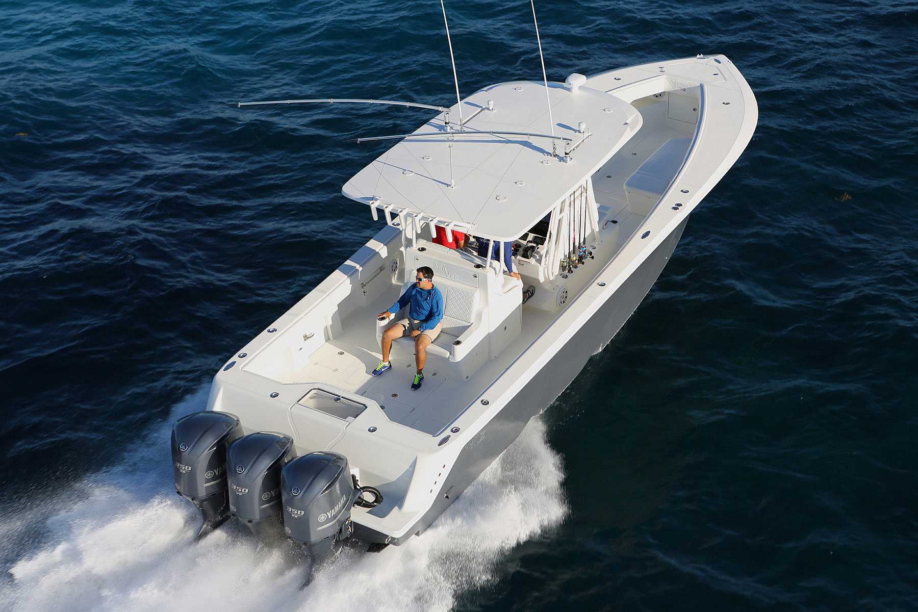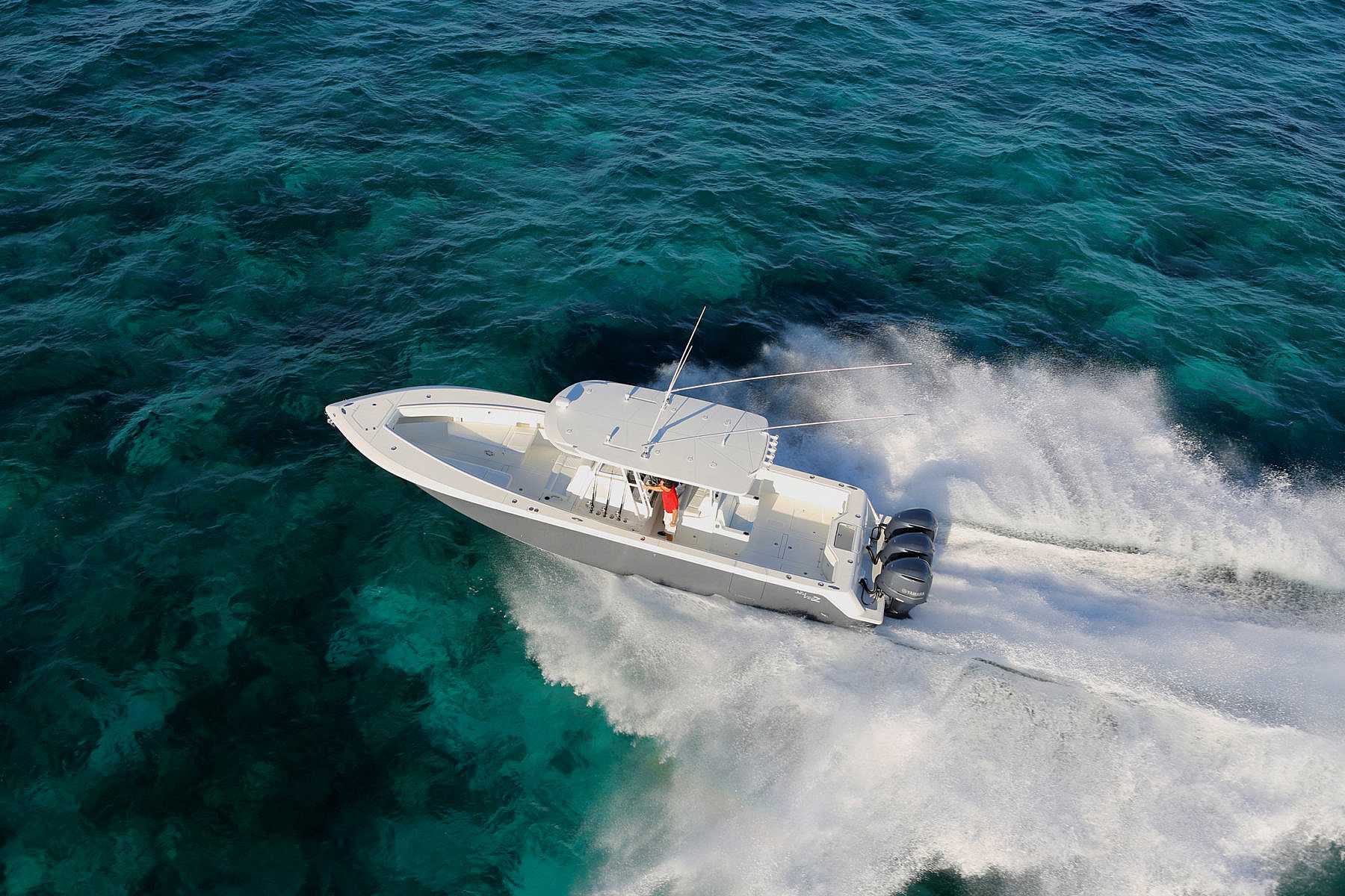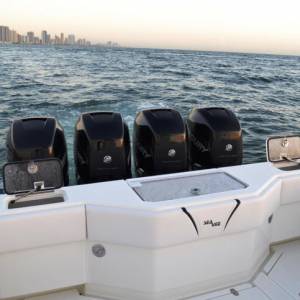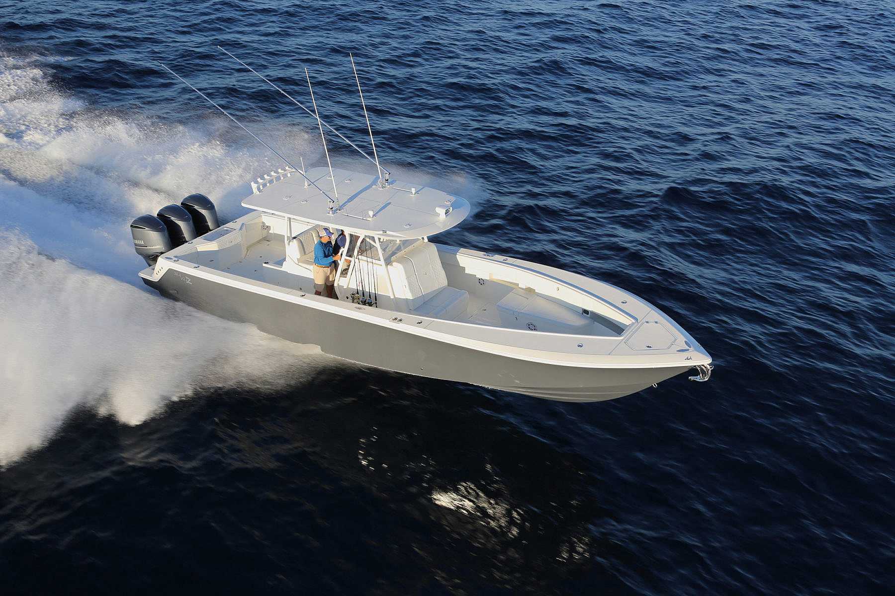 The 390z is the ultimate center console fishing machine. Triple or quad outboards ranging from 900 – 1,800 hp combined with SeaVee’s revolutionary, twin stepped hull means the 390z boats superior speed, handling and fuel efficiency. Thanks to abundant storage capacity for fuel, bait, ice and gear, the 390z makes multi-day offshore trips a reality.