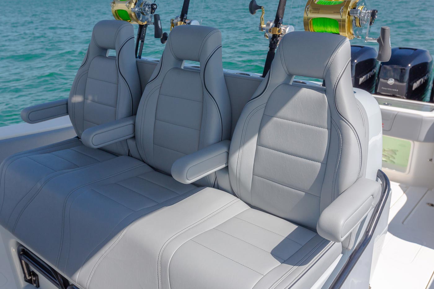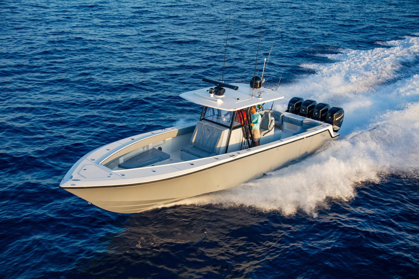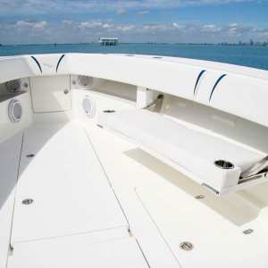 Additional fishing features include a variety of towers and upper stations choices to help the captain spot fish at a distance. A Coffin box for the front cockpit as well as electric reel outlets and a variety of outrigger configurations complete the package.
