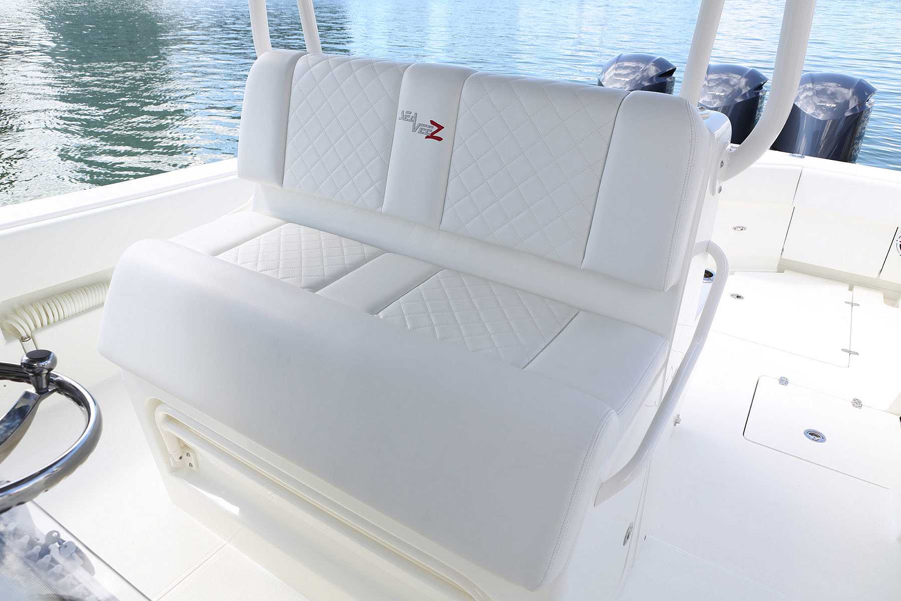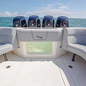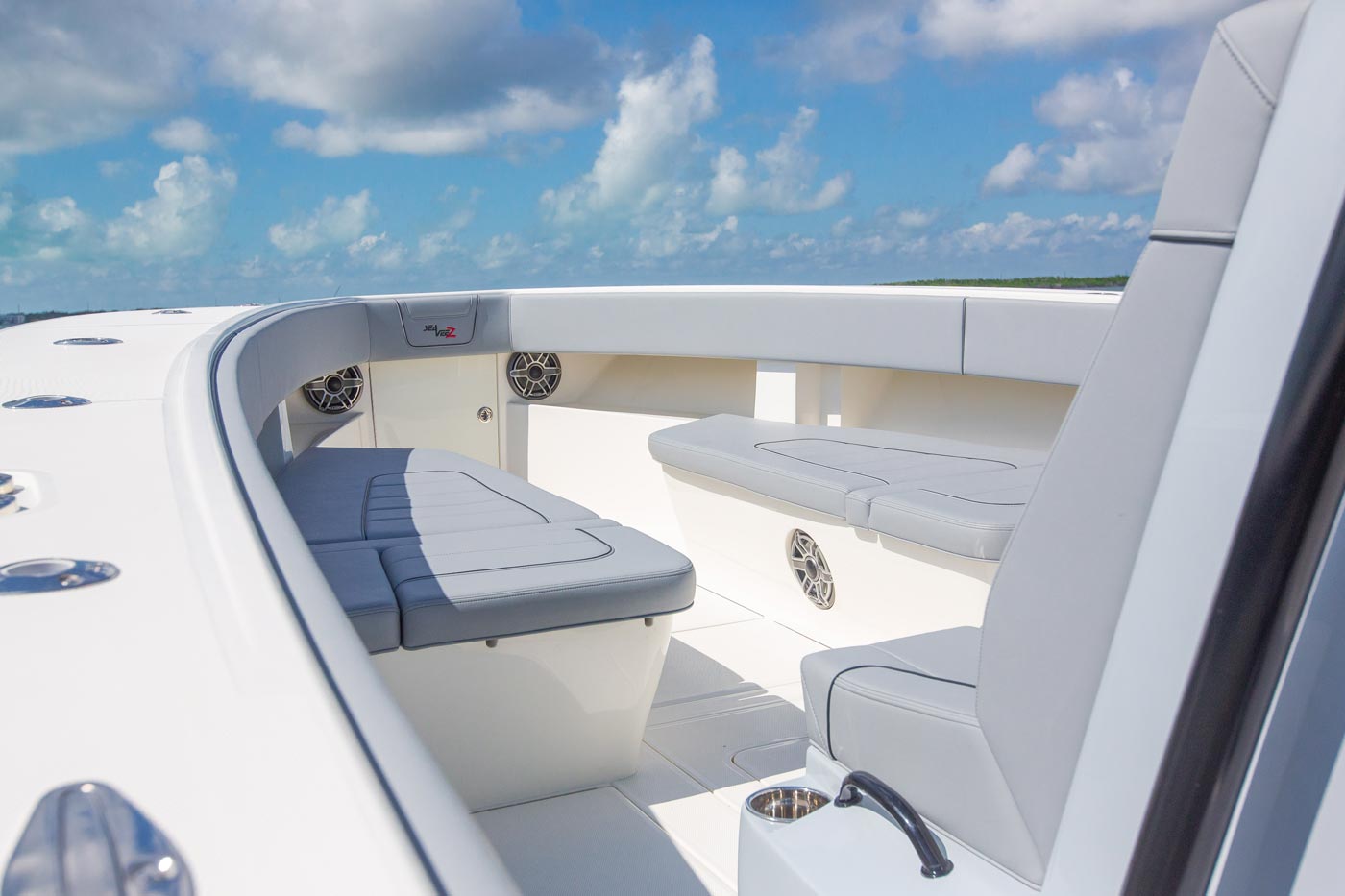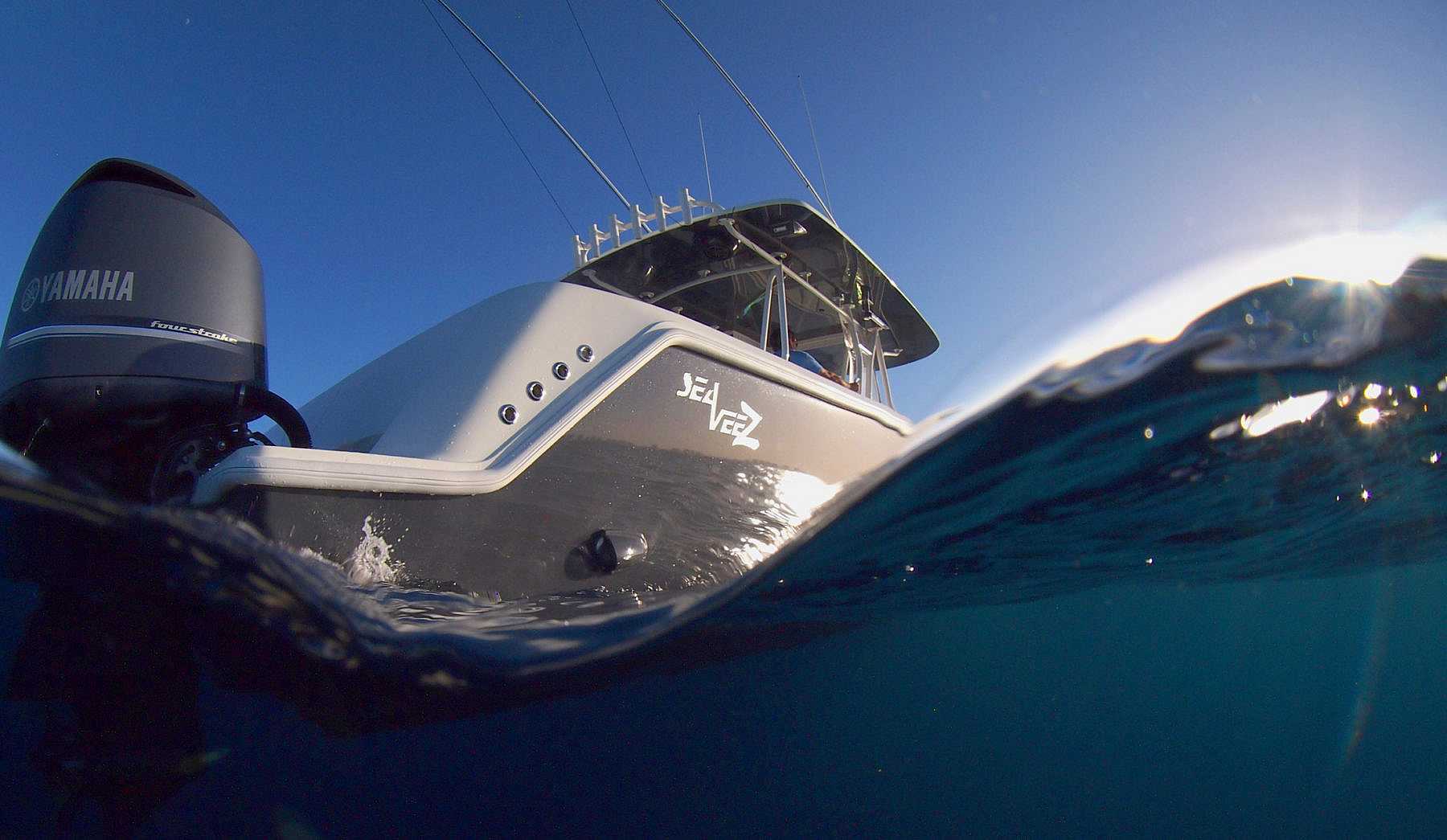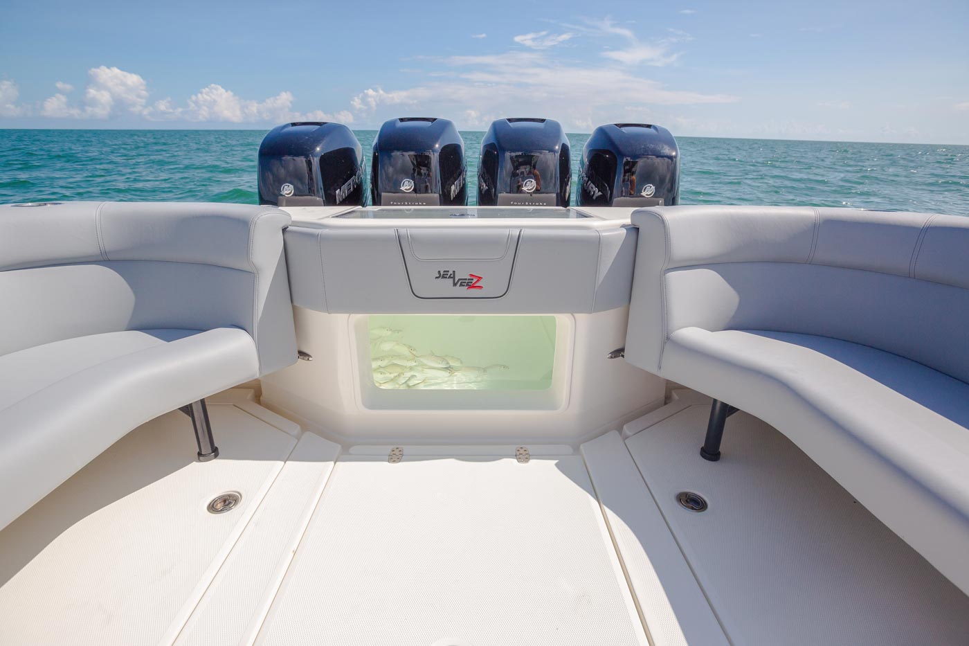 Every SeaVee Z features a twin stepped, cross-ventilated hull with patented SpeedRail® technology. Multiple lifting bodies with unique geometry ensure a fixed trim angle throughout a wide range of speeds. That’s a fancy way of saying you always have a clear view of the horizon, maximum fuel efficiency, more speed and safe predicable handling when making hard turns.