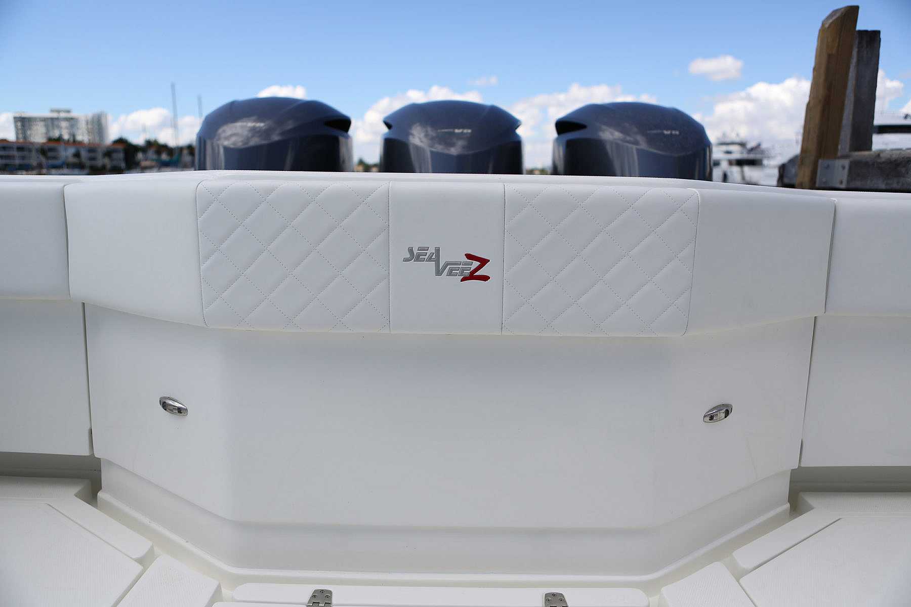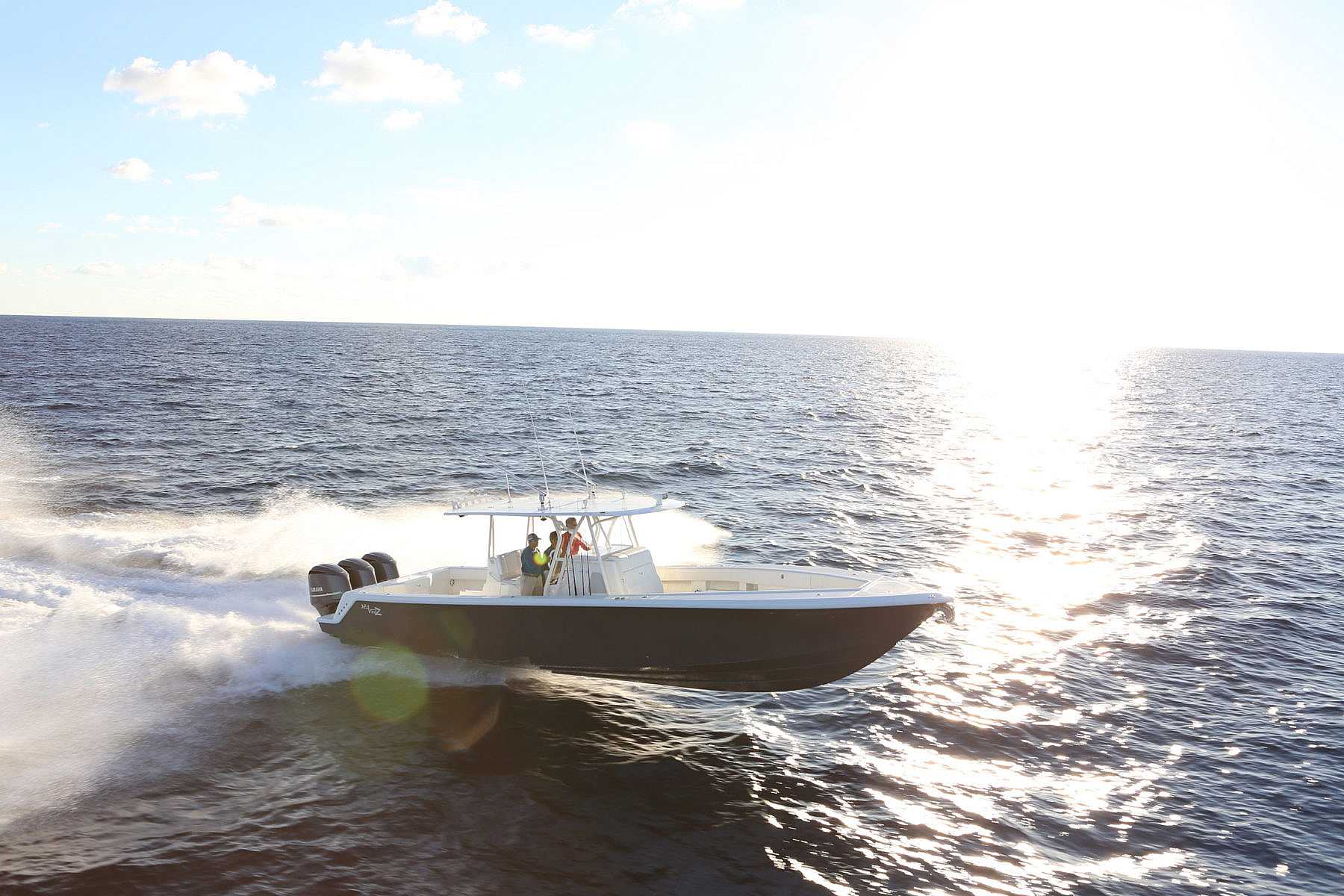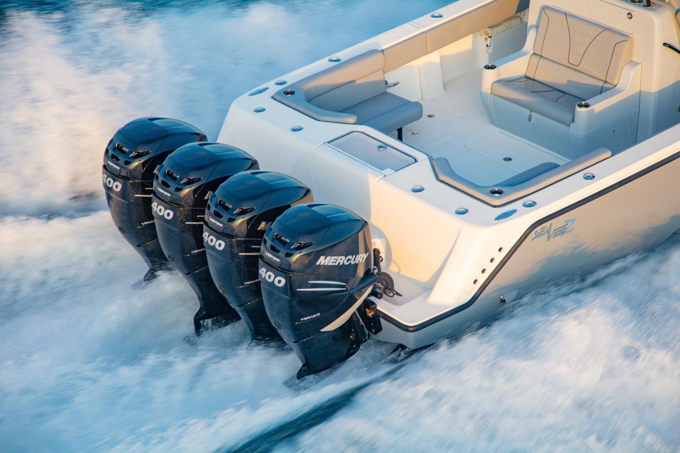 Every SeaVee Z features a twin stepped, cross-ventilated hull with patented SpeedRail® technology. Multiple lifting bodies with unique geometry ensure a fixed trim angle throughout a wide range of speeds. That’s a fancy way of saying you always have a clear view of the horizon, maximum fuel efficiency, more speed and safe predicable handling when making hard turns.