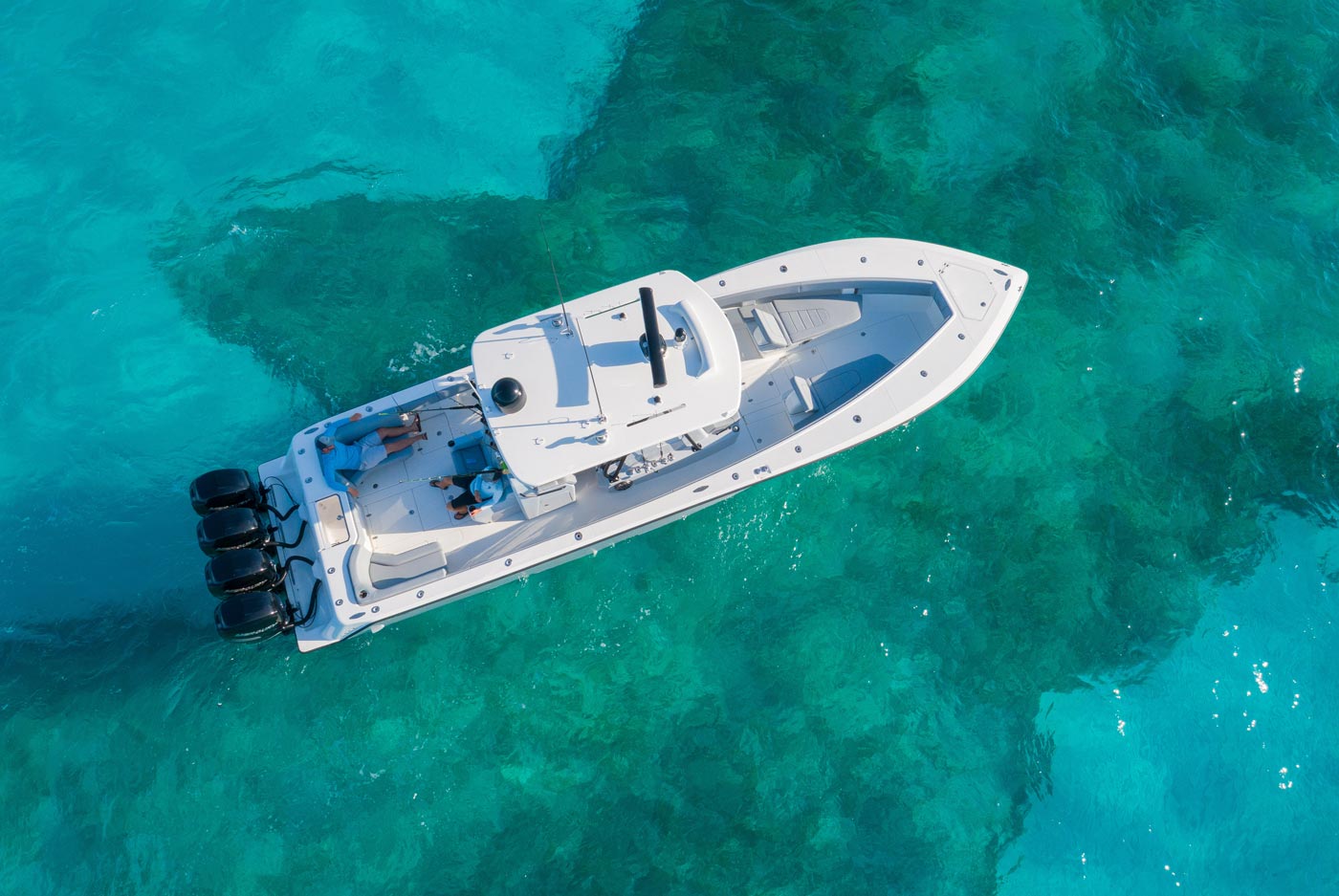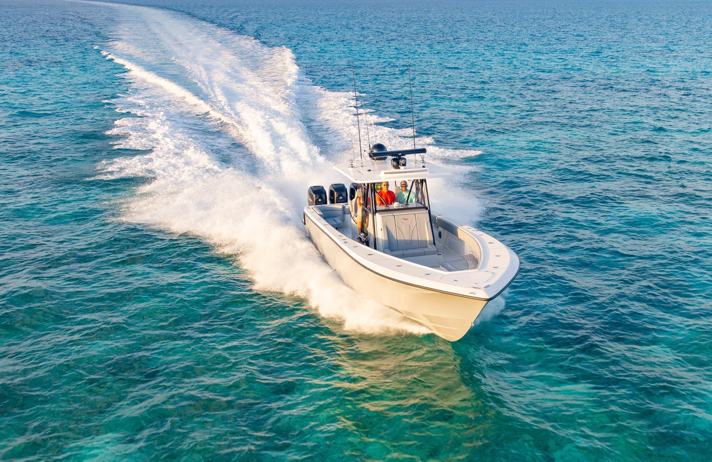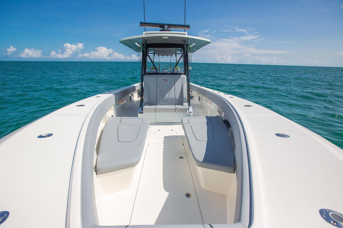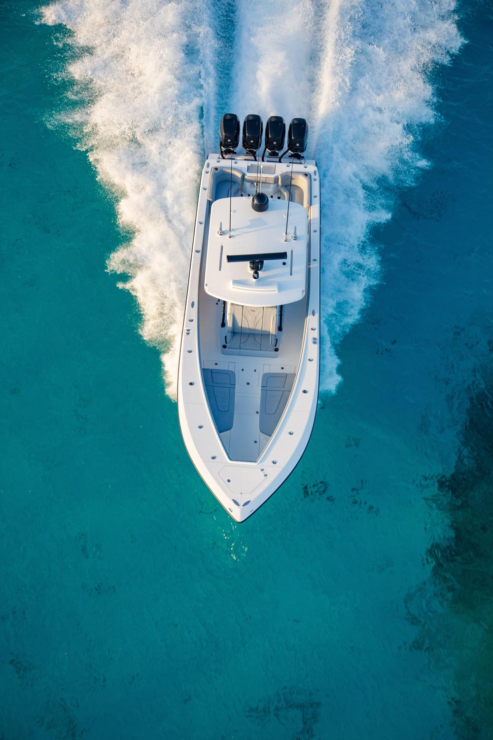 Every SeaVee Z features a twin stepped, cross-ventilated hull with patented SpeedRail® technology. Multiple lifting bodies with unique geometry ensure a fixed trim angle throughout a wide range of speeds. That’s a fancy way of saying you always have a clear view of the horizon, maximum fuel efficiency, more speed and safe predicable handling when making hard turns.