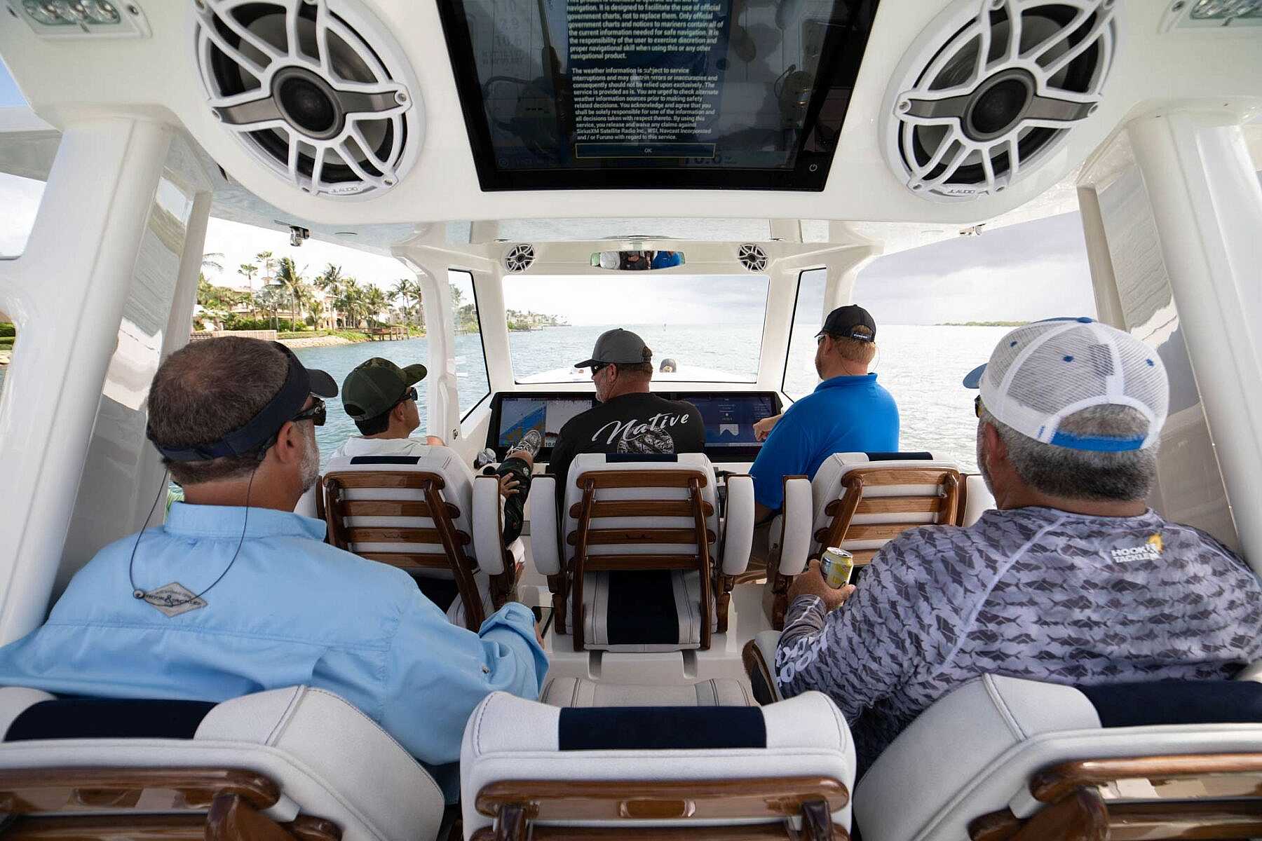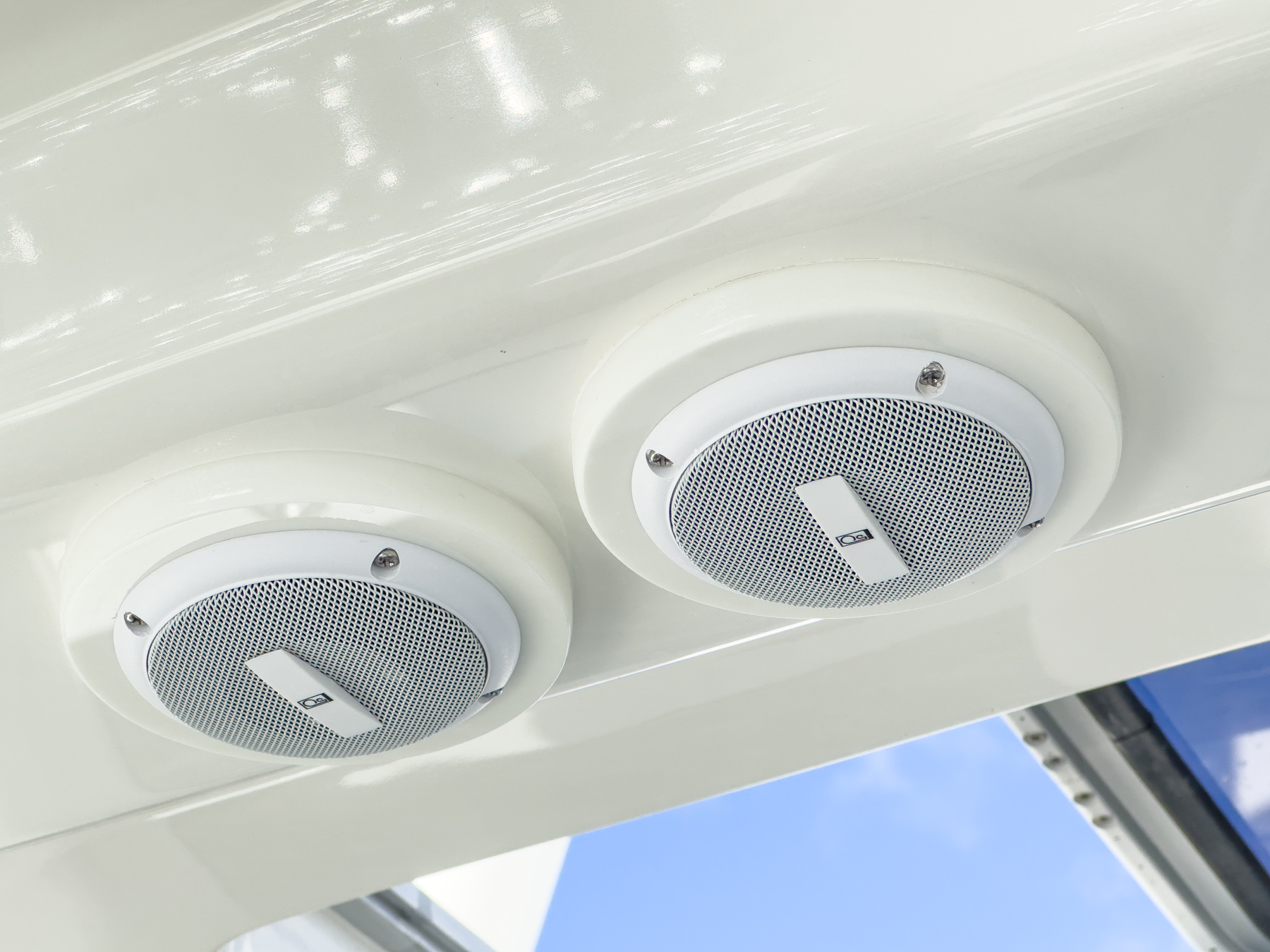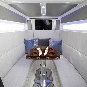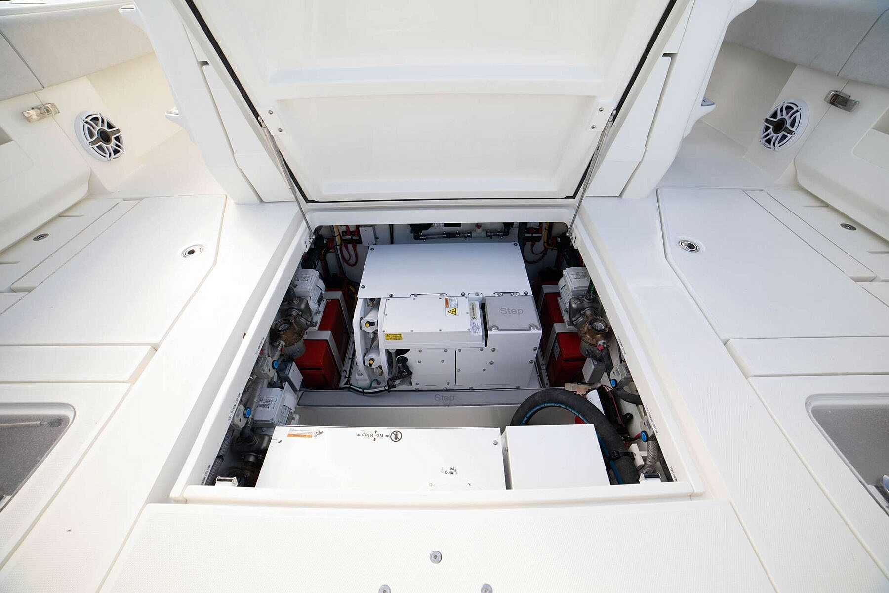- Automated rear facing mezzanine seat with dual coolers, arm rests and cup holders