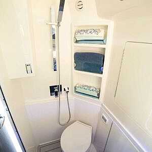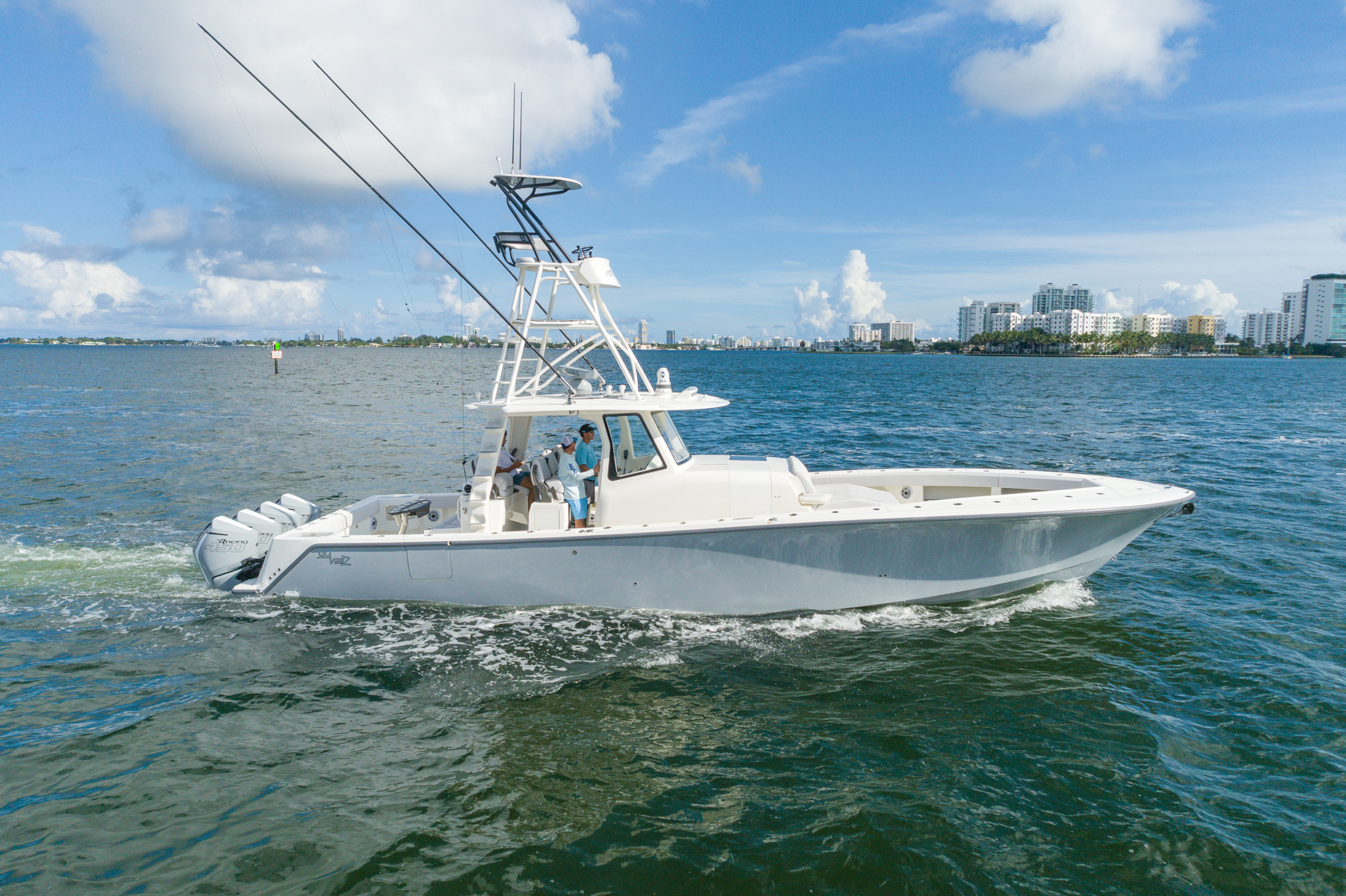 The 450z is designed for long range trips with a large crew and can be customized to fit your exact needs. Fishing enthusiasts can choose from a variety of towers, bait wells and rod holder configurations. Families seeking extra comfort will find the air conditioned cabin and head with shower facilities appealing.