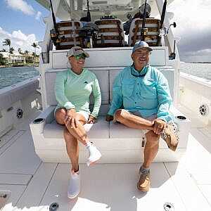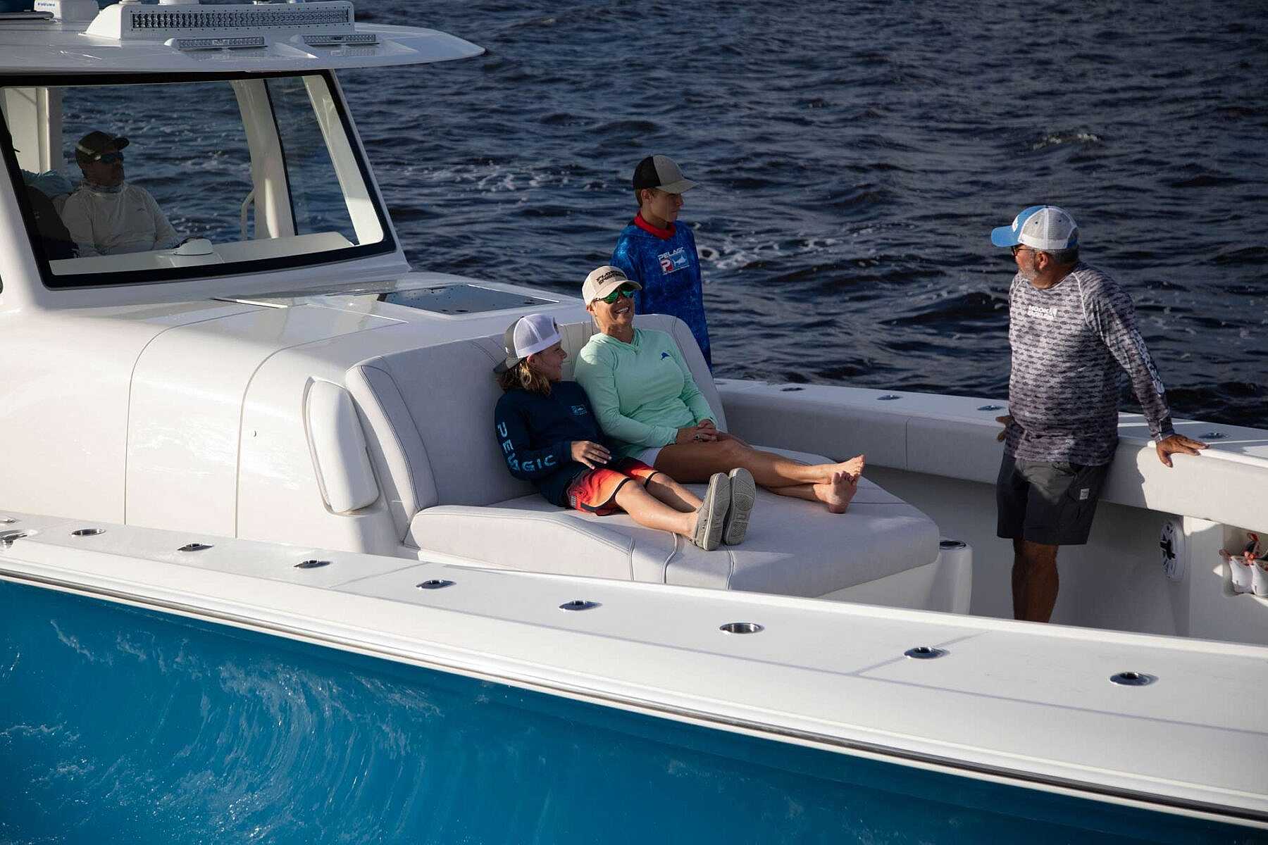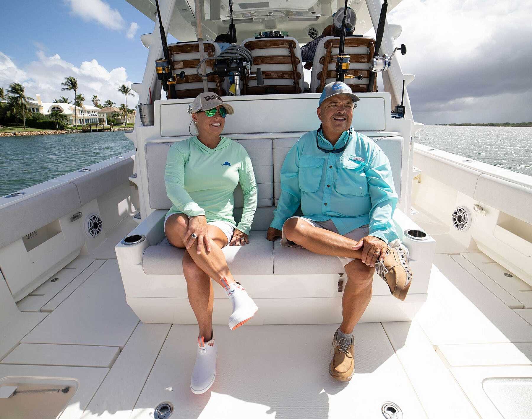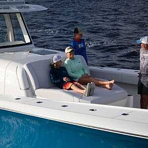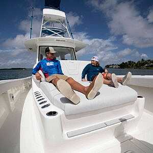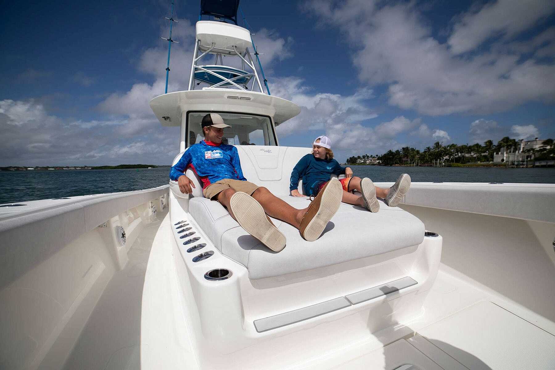 The bow lounger, double leaning posts and rear seating offer an abundance of comfort and luxury.