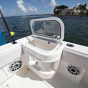 The 450z can accommodate up to 5 bait wells, four in the transom, and one in-deck well up front.